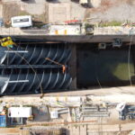 Moderní vodní elektrárna využívající Archimédovy šrouby pro ekologickou výrobu energie ze spádu mezi řekou Mersey a Manchester Ship Canal.